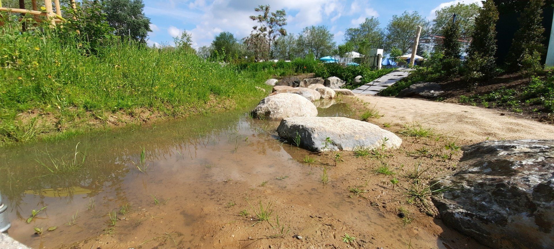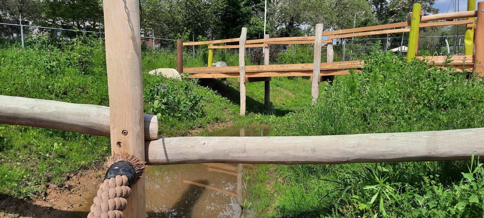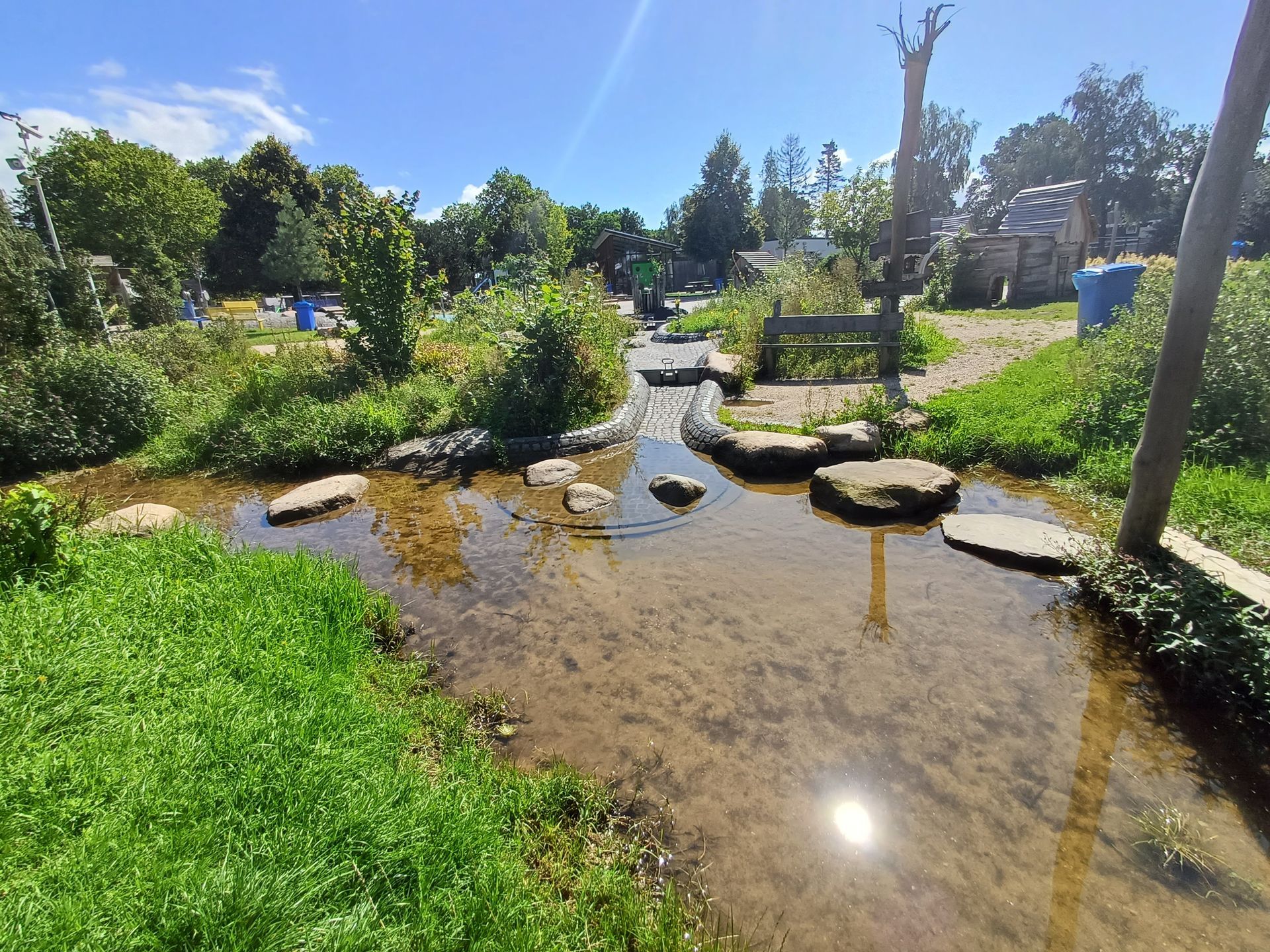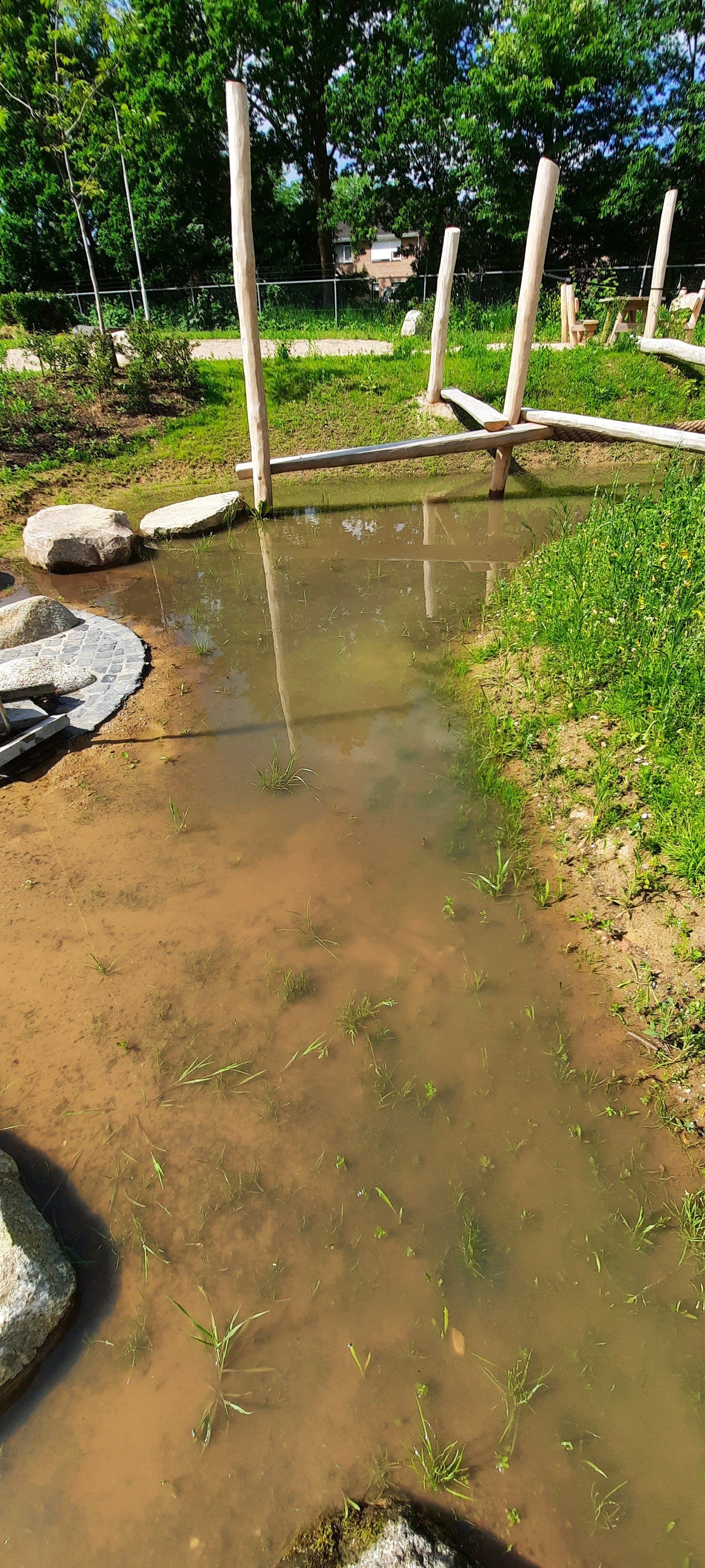 Maar we hadden nog een droom: een natuurspeelplaats. Dus nu onze ijsbaan door de warme winters nauwelijks meer gebruikt werd, zijn we daar aan de slag gegaan. Fase één van de natuurspeelplaats is nu klaar, en volledig toegankelijk. Op de bouwplaats en het nattevoetenpad kunnen ook kinderen in een rolstoel. Want met water en zand willen toch alle kinderen spelen? En het belevingspad is een geweldige ervaring voor kinderen met een visuele handcap. Hopelijk kunnen we fase twee binnenkort openen; voor fase 3 zoeken we nog financiering.