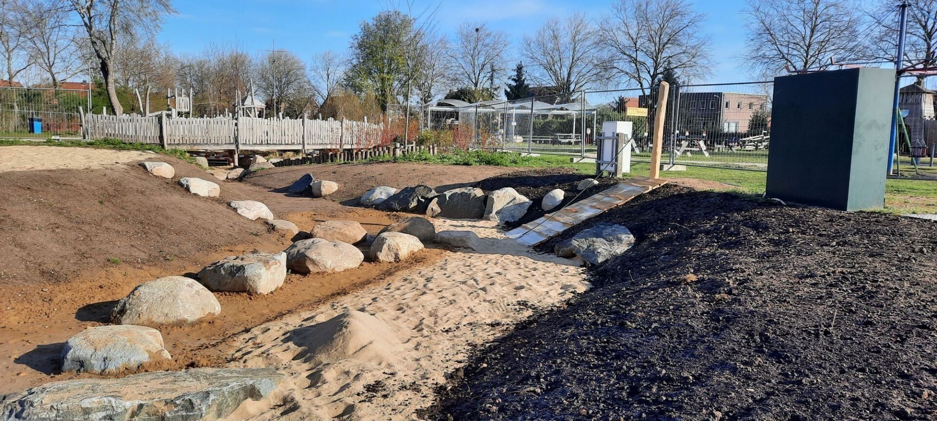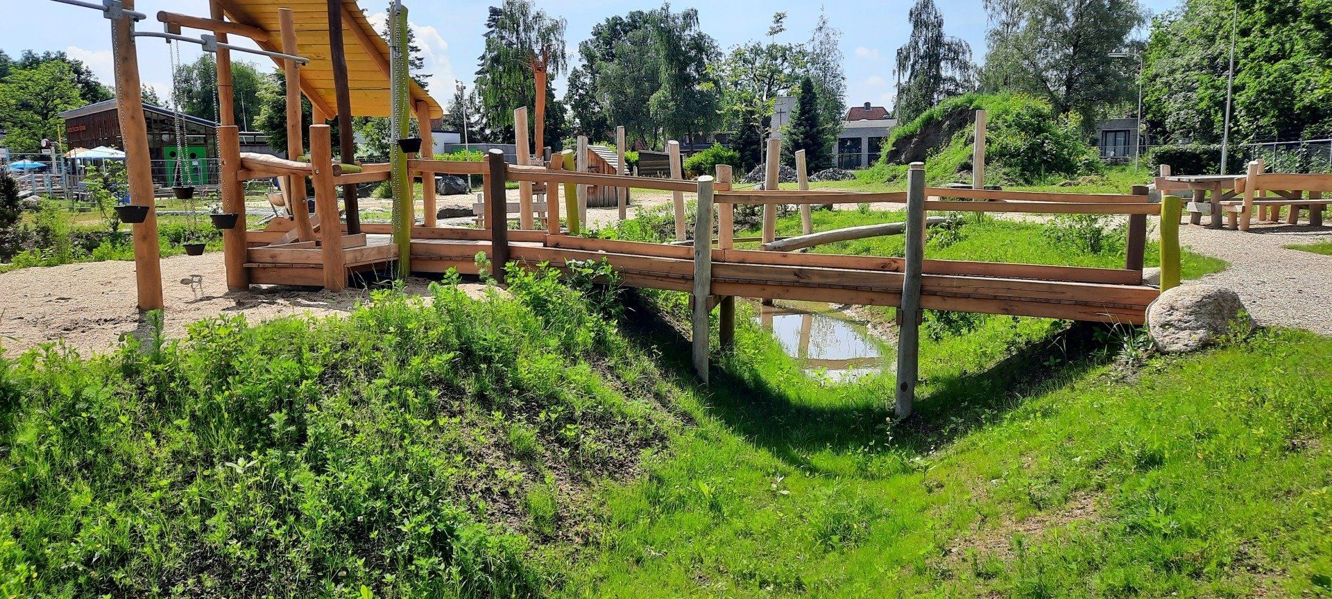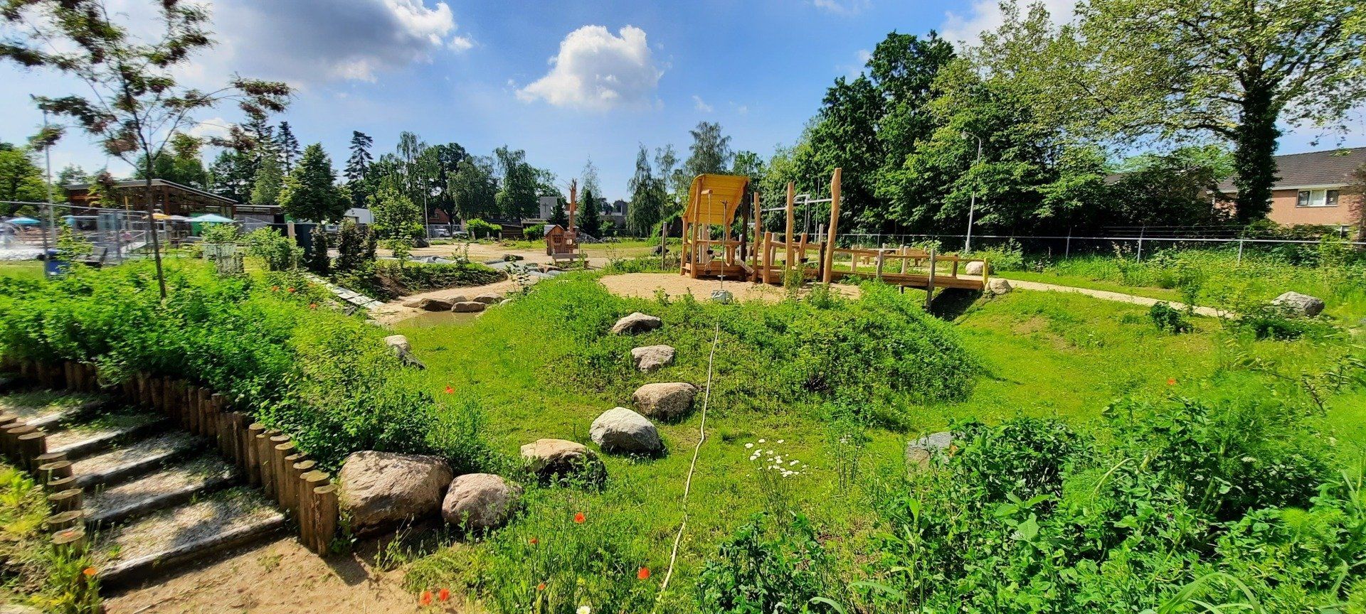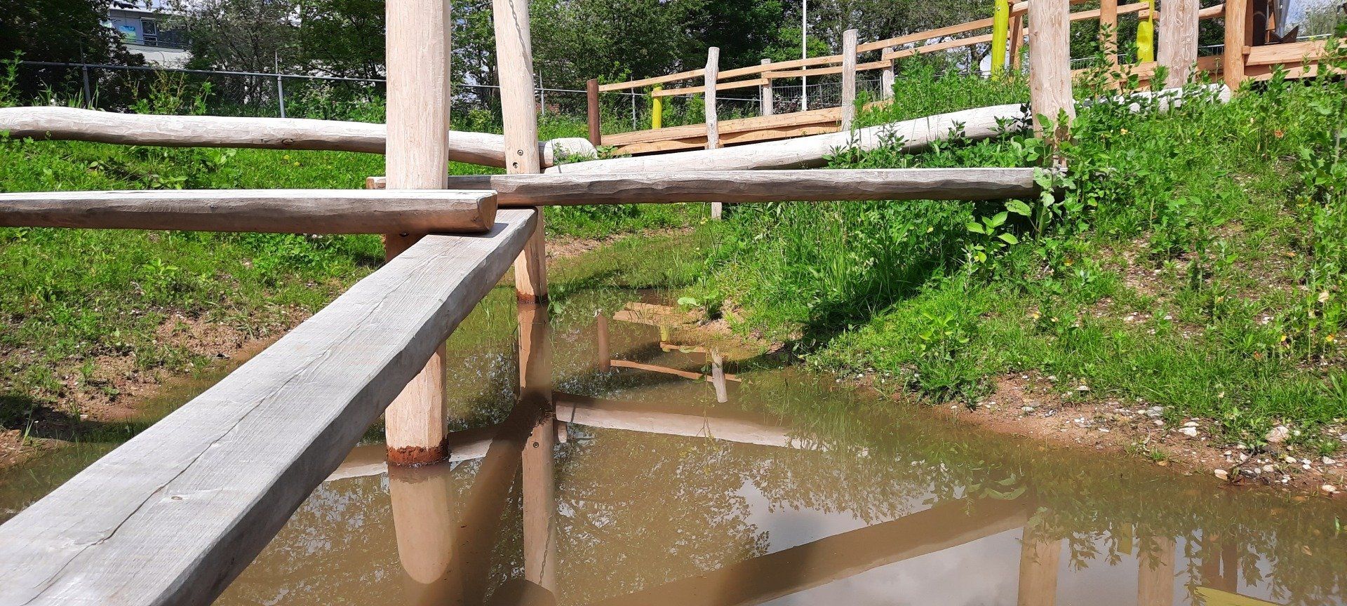 Maar we hadden nog een droom: een natuurspeelplaats. Dus nu onze ijsbaan door de warme winters nauwelijks meer gebruikt werd, zijn we daar aan de slag gegaan. Fase één van de natuurspeelplaats is nu klaar, en volledig toegankelijk. Op de bouwplaats en het nattevoetenpad kunnen ook kinderen in een rolstoel. Want met water en zand willen toch alle kinderen spelen? En het belevingspad is een geweldige ervaring voor kinderen met een visuele handcap. Hopelijk kunnen we fase twee binnenkort openen; voor fase 3 zoeken we nog financiering.