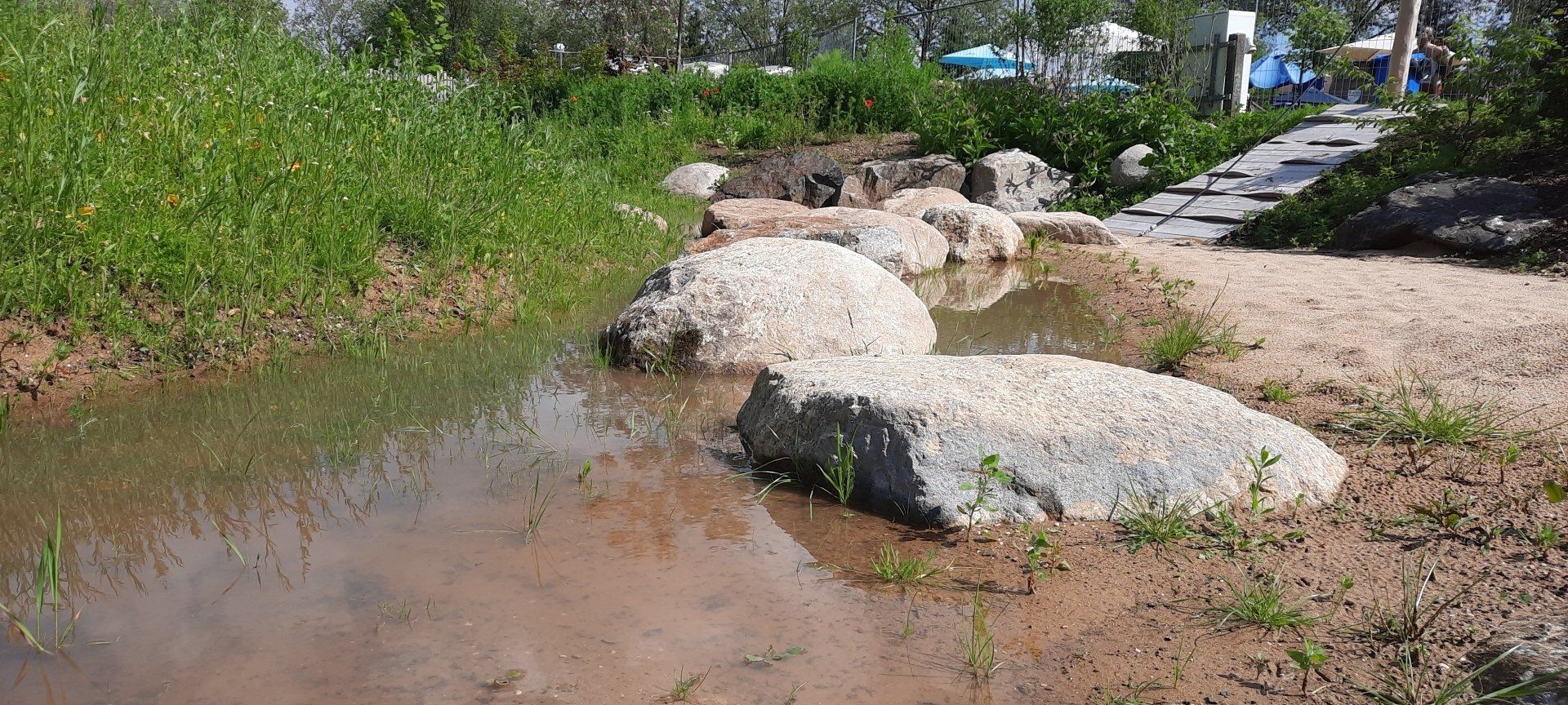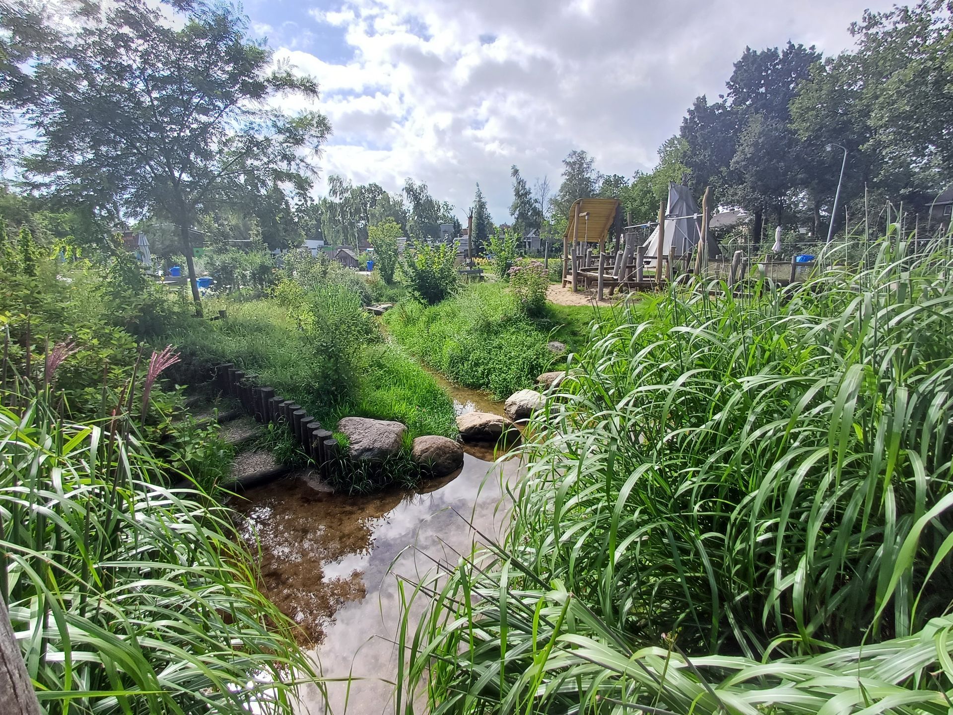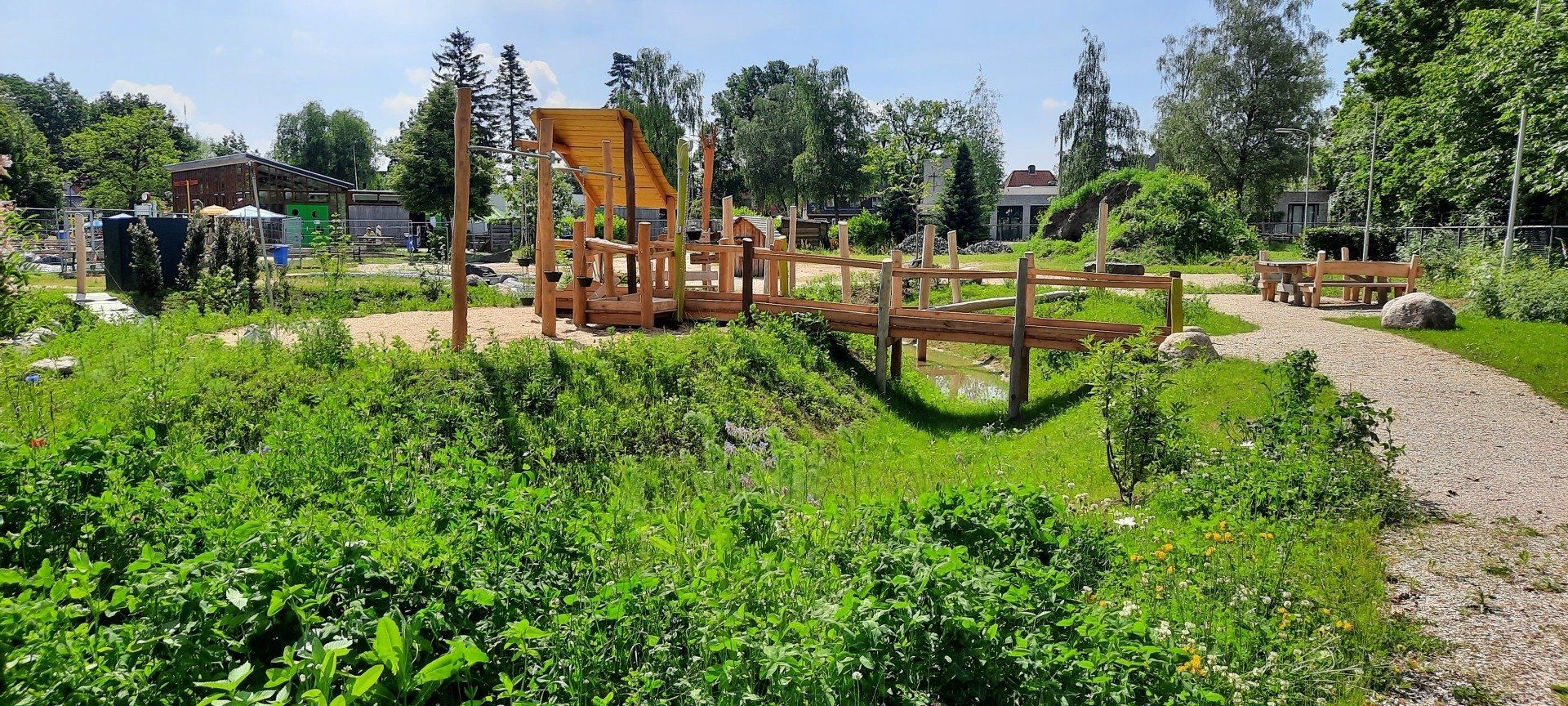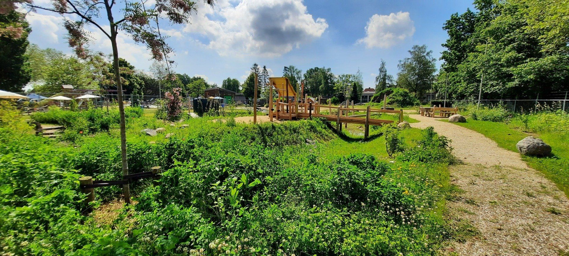 Maar we hadden nog een droom: een natuurspeelplaats. Dus nu onze ijsbaan door de warme winters nauwelijks meer gebruikt werd, zijn we daar aan de slag gegaan. Fase één van de natuurspeelplaats is nu klaar, en volledig toegankelijk. Op de bouwplaats en het nattevoetenpad kunnen ook kinderen in een rolstoel. Want met water en zand willen toch alle kinderen spelen? En het belevingspad is een geweldige ervaring voor kinderen met een visuele handcap. Hopelijk kunnen we fase twee binnenkort openen; voor fase 3 zoeken we nog financiering.