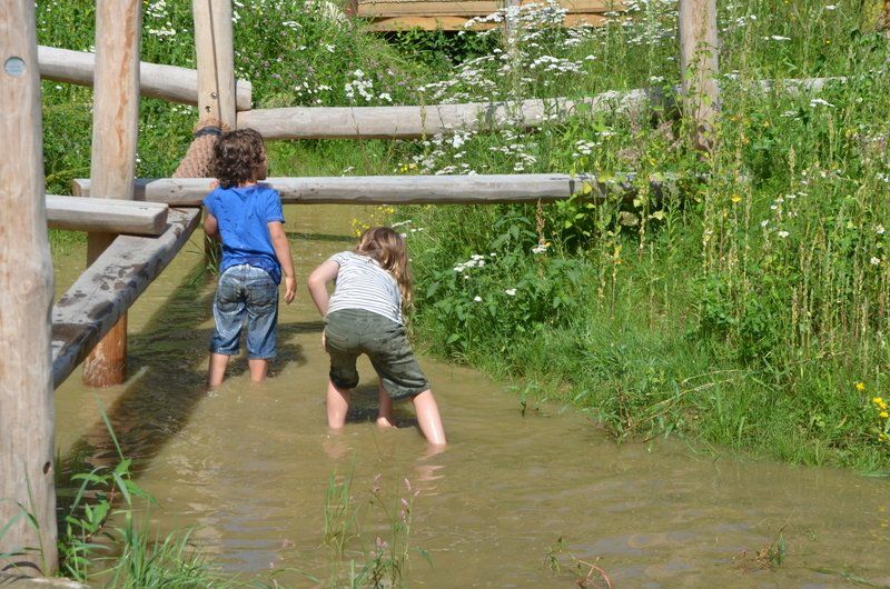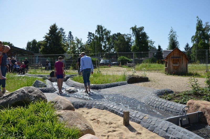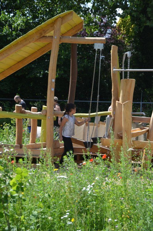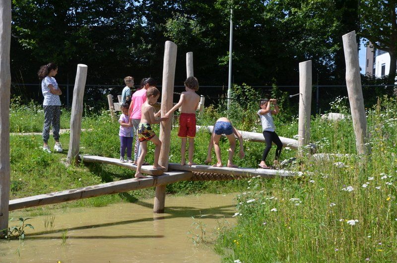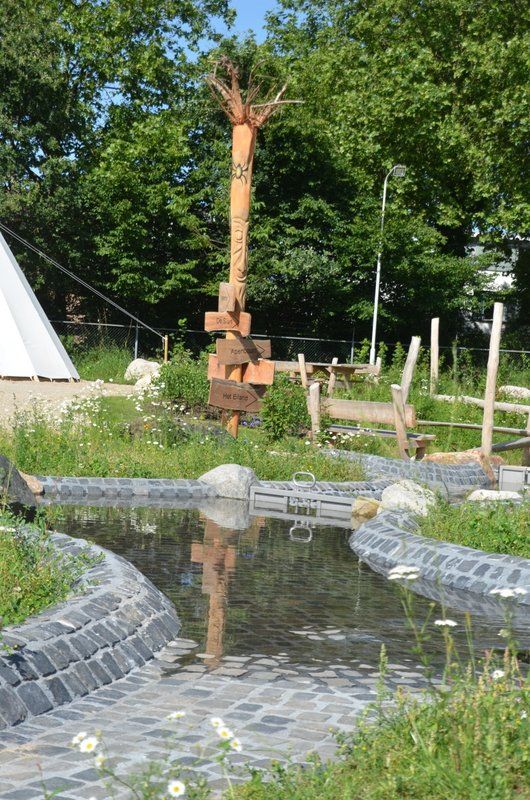 Maar we hadden nog een droom: een natuurspeelplaats. Dus nu onze ijsbaan door de warme winters nauwelijks meer gebruikt werd, zijn we daar aan de slag gegaan. Fase één van de natuurspeelplaats is nu klaar, en volledig toegankelijk. Op de bouwplaats en het nattevoetenpad kunnen ook kinderen in een rolstoel. Want met water en zand willen toch alle kinderen spelen? En het belevingspad is een geweldige ervaring voor kinderen met een visuele handcap. Hopelijk kunnen we fase twee binnenkort openen; voor fase 3 zoeken we nog financiering.