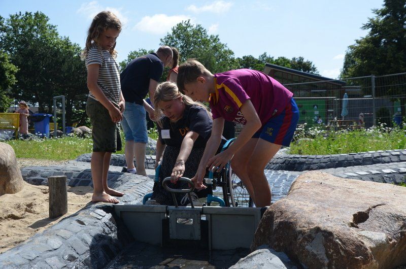 Informatie over toegankelijkheid hebben we zelf gezocht. We hebben navraag gedaan bij speeltuinen die het al hadden. Contact opgenomen met de Johannastichting en Papendal hier in de buurt. Vanuit mijn eigen ervaring met meervoudig gehandicapte kinderen wist ik ook al veel. We hebben een bestuurslid met een gehandicapt kind; deskundigheid van ouders en kinderen is heel belangrijk. Ook de NUSO en de Speeltuinbende waren betrokken. En aan organisaties die hier komen met kinderen met beperkingen vraag ik of ze wensen hebben of ergens tegenaan lopen.
